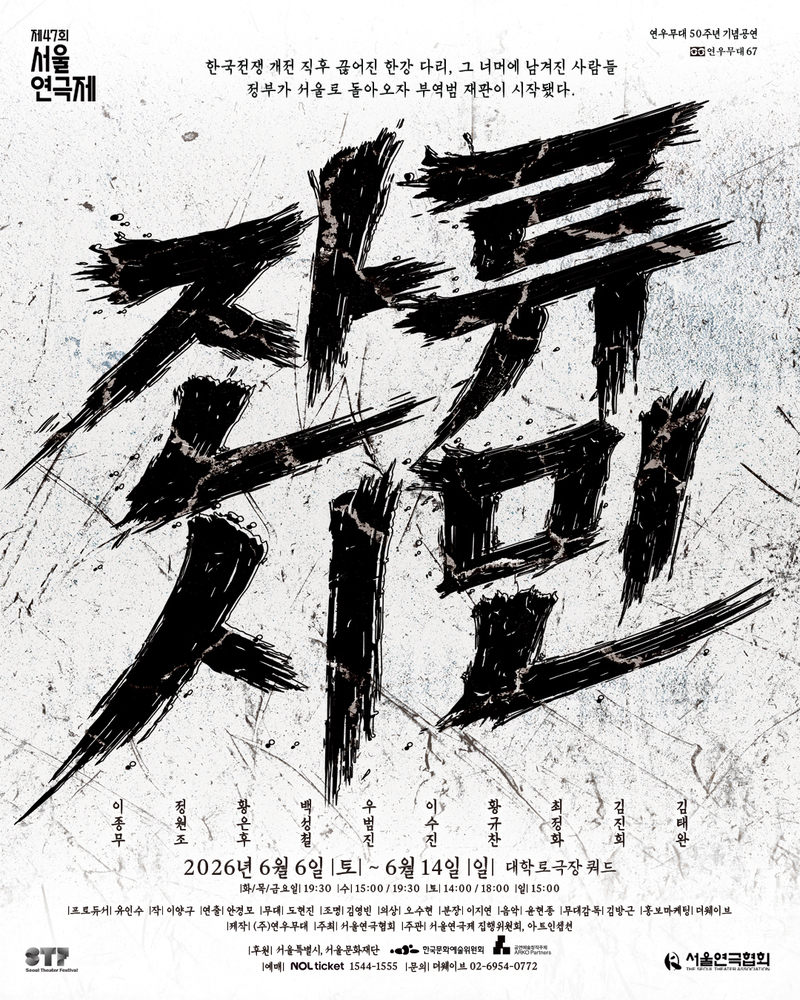 <제47회 서울연극제> 공식선정작 연극 <잔류시민>은 이러한 ‘부역자 재판’이라는 비극적 사건을 단순히 전쟁이라는 극단적인 상황 속에서 권력과 여론이 결합된 재판이 어떻게 법의 형식을 유지한 채 처형의 도구로 변질되는지를 집요하게 드러낸다.